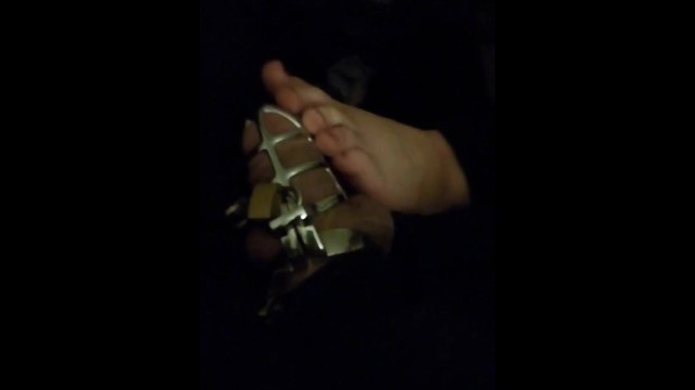 I PUT A CHASTITY DEVICE ON MY SLAVE AND GAVE HER A FOOT JOBU2661 HE WAS RUBBING HIS DICK ON MY ASS